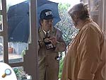 "Ich bin von der Polizei, M'am, von der Polizei, sehen Sie, Polizei!" - "Aah, Polizei-Inspektor." - "Genau, Müll, Müll, wo bringen Sie den Müll hin?"