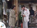 Columbo weist sich vor La Sankas Lebensmittelgeschäft einem Polizisten gegenüber aus.