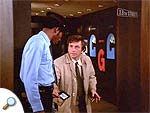 Columbo zeigt seinen Ausweis Hayden Danzinger, dem Mörder dieser Folge.