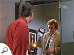 Columbo zeigt seinen Ausweis Sean Brantley, dem Mörder dieser Folge.