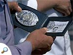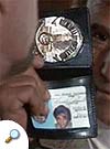In den ersten Folgen ist dieser Ausweis zu sehen: Er ist schwarz/weiß und klappt sich über die Marke.